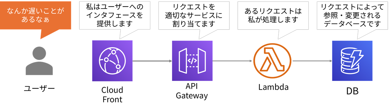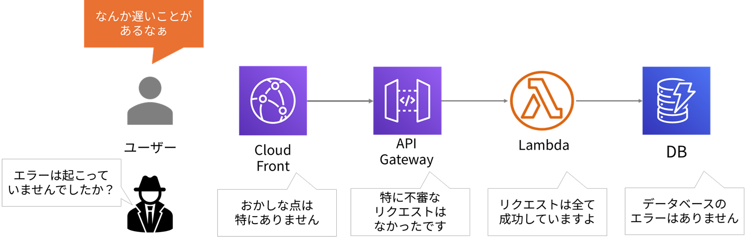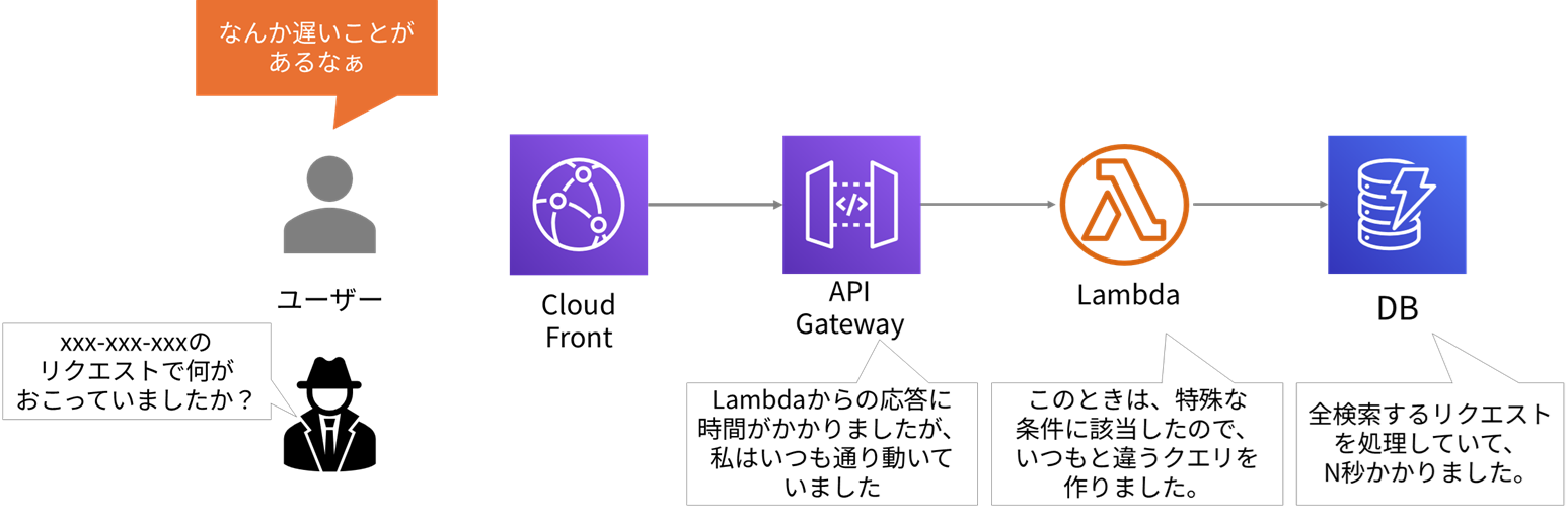 ある日、AWS上に構築したシステムで事件が起きました。ユーザーからのリクエストに対する応答が遅くなることがあるといったものでした。