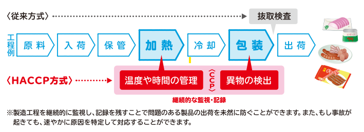 まずは表題にもあるHACCP(Hazard Analysis and Critical Control Point)ですが、一言でいうと「食品を扱う事業者において、その製造から出荷までを監視・管理することで食の安全を守る」ということです。2020年6月から制度化、翌年6月に完全施行、義務化されています。