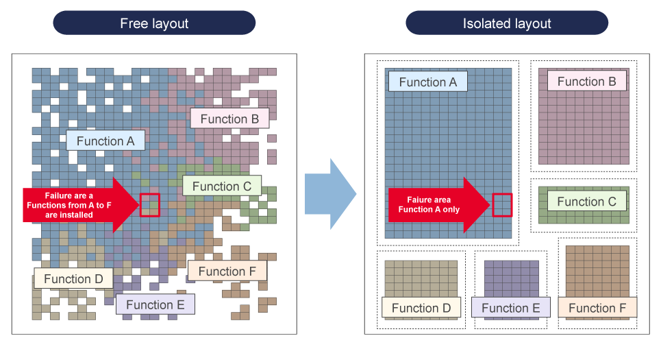 Normally, the FPGA layout is not arranged on the basis of functional module, unlike the case of ASIC. For this reason, gates and wiring of multiple functional modules might be adjacent to each other. In such a layout, when a physical failure occurs, the error might propagate to multiple functions at the same time.