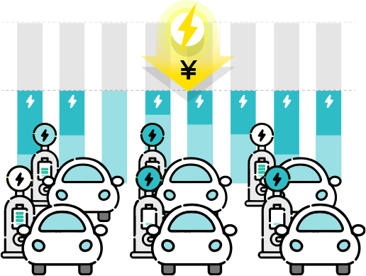 EVへの充電時、ピーク電力が大きくならないように充電タイミングを制御し、電気料金の上昇を抑えます。